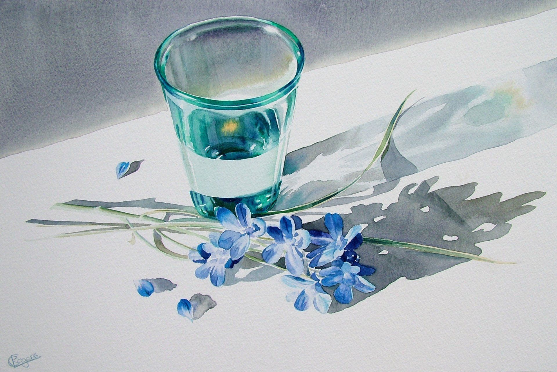 I am drawn to painting still life images of glass, reflections and shadows. I enjoy being in control of the set up and then embarking on painting the challenge I have set myself.